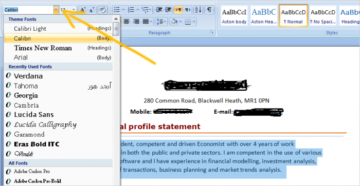 AN IMPORTANT NOTE ABOUT FONT SIZES WHEN WRITING YOUR CV